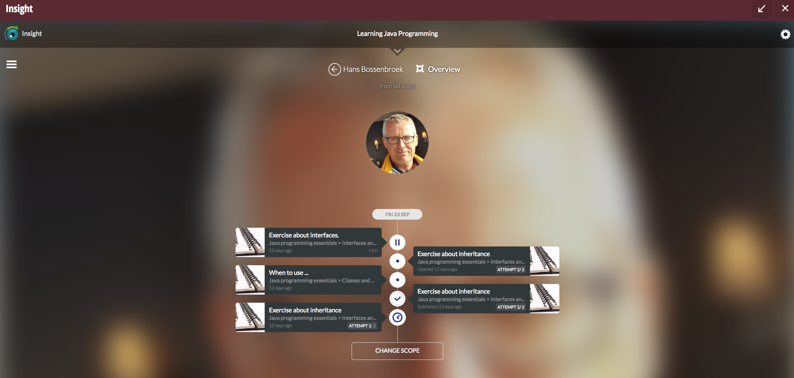 The Insight app is an important diagnostic instrument. It enables teachers to gain insights in the activities that were performed by students, what learning-material was used during these activities and which results were achieved. Combined with the Progress app it is an important basis for the learning analytics performed by teachers.